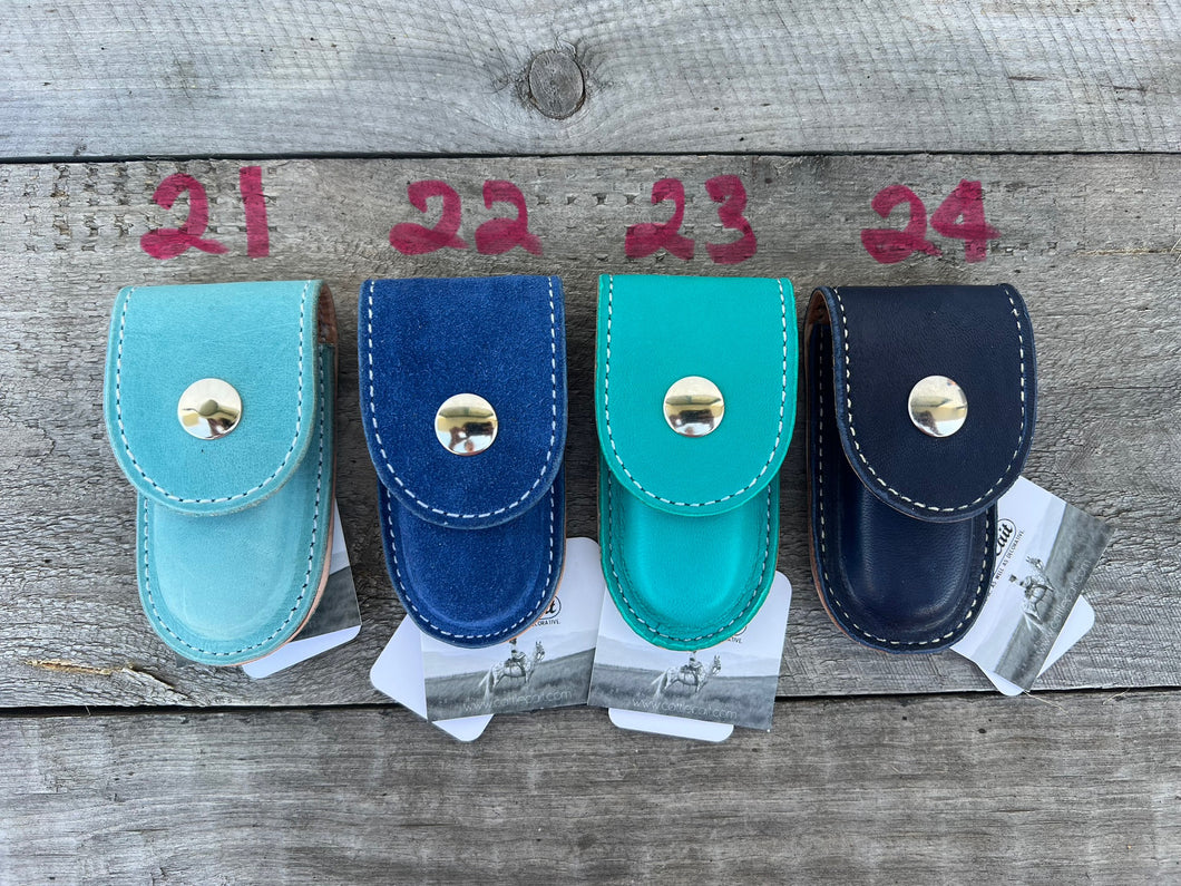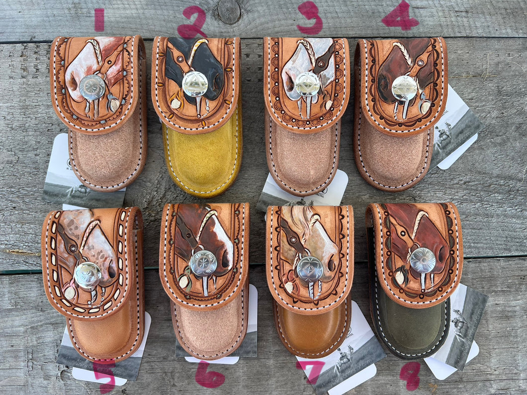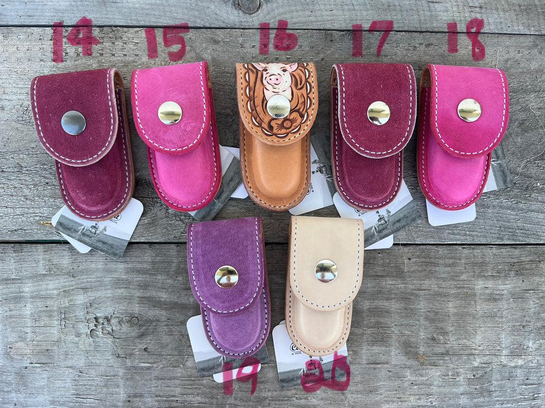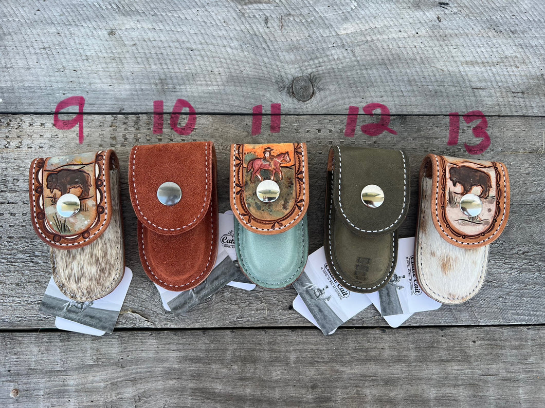 Each case COMES WITH a Cattle Cait, 'Even A Sharp Blade Goes Dull' lock blade pocketknife and the case can slide onto an average 1 1/2" belt or smaller.